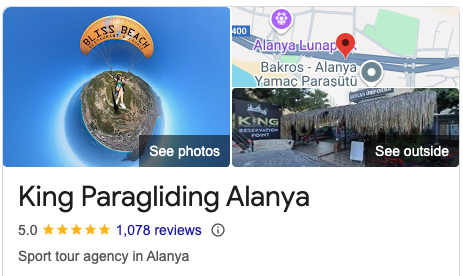 “At King Paragliding, we offer an unforgettable experience where you can soar like birds and witness the breathtaking beauty of Alanya. With our expert instructors, you can enjoy the thrill of flying safely while taking in the magnificent views of Alanya from above.
